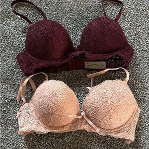 Experience elegance with this lace bra set in rich burgundy and soft blush. Perfect for adding a touch of luxury to your everyday wear.