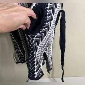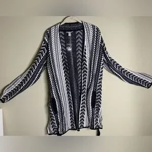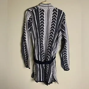 Isaac Mizrahi Live Black and White Chevron Design Tie Close Cardigan M NWT