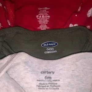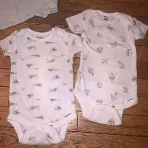 Baby boy clothes bundle 2 packs of 9 boy clothes. 3-6months Gerbere brand boy clothes comes with 4 shirts material and tag is in the photos, 6-12months boy clothes Rococ brand, Carters and Old Navy also comes with 5 clothes. Brand new never worn only took them out of the bags for pictures.