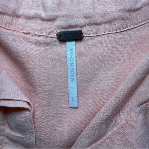 YFB, Young Fabulous & Broke, Linen Blend, 3/4 Balloon Sleeve Shirt Dress, Womens Large. Pockets on the Front Chest Area. Full Button Down, Collared. Peach / Light Orange.