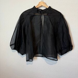 Kamperett Meiere Sheer Black Silk Organza 3/4 Sleeve Blouse Women's Size Medium