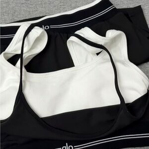 Alo Black and White Sports Bra and Skirt Set