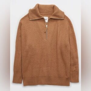 Aerie oversized cream/light brown quarter zip, size medium would fit up to large! NWT!