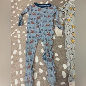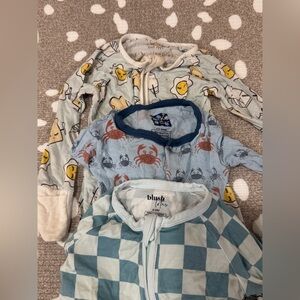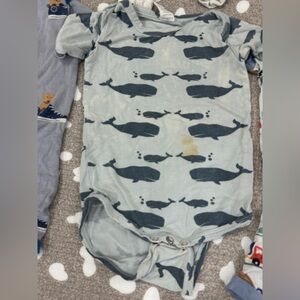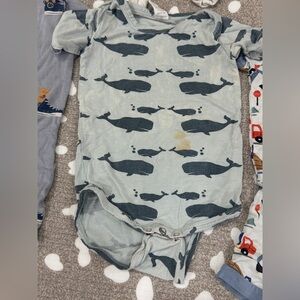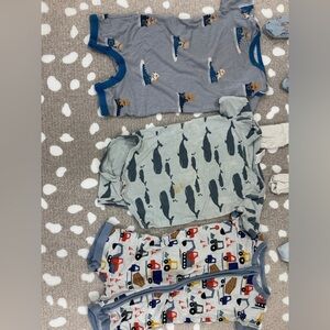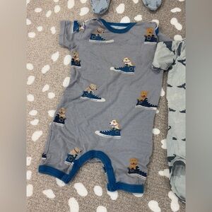 Lot of 6 bamboo footies shortie romper onesie baby boy checkered dogs animals