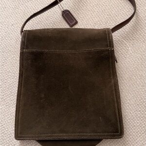 Rare Vintage Coach Olive Suede Leather Crossbody Bag