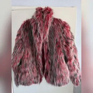 Size M, multicolored red/black/white faux fur.