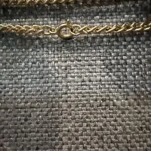 Hangs on a coordinating 30” gold-toned chain. I heard from an Avon representative today that told me all of Avon’s gold jewelry is actually 24K gold plate! I never realized that. This piece is in pretty good condition considering its age. I noticed a tiny section where the fabric is pulling away from the frame not really noticeable but I will add in photos.