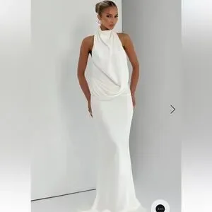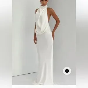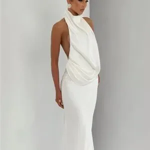 Make a statement with this elegant white backless gown. Perfect for formal events, its sleek design offers timeless sophistication.