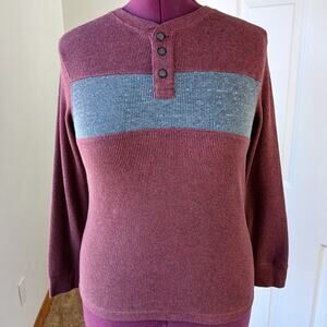 Arizona Jean Co Thermal Waffle Knit Henley L long sleeves burgundy grey stripe