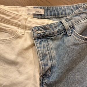 Vervet by Flying Monkey two-tone, high-rise, distressed straight-leg denim jean