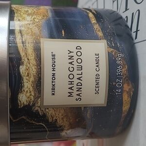 Mahogany Sandalwood Candle by Kirkton House. The notes of sandalwood are woody, rich, and slightly sweet. The mahogany adds notes of vanilla and amber. Kirkton House produces high quality candles that are fragrant and long lasting. 14oz. Made in the USA. Brand new and has never been used. In excellent condition.