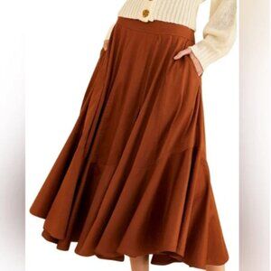 Great condition, new with tags. Farm Rio. Caramel Ruffled Maxi Skirt. Ground yourself in the Fall with the earthy vibe of the Caramel Ruffle Maxi Skirt, the solid style that is here to be your new fave wardrobe staple. Its ruffled style brings movement to the look and helps you flow through the season. The side pockets are the perfect excuse for wearing the piece in any situation, from city life to fancy events. Just bring a cozy top and comfy shoes to complete the outfit and turn any moment into timeless memories.