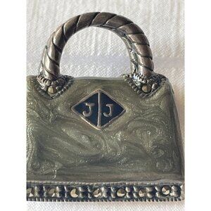Vintage Judith Jack Marbled Enamel Marcasite Purse Brooch Pin