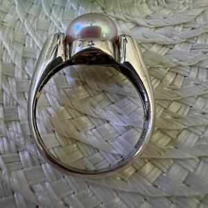 Beautiful.925 Silver Champagne Heart 9mm Pearl Ring