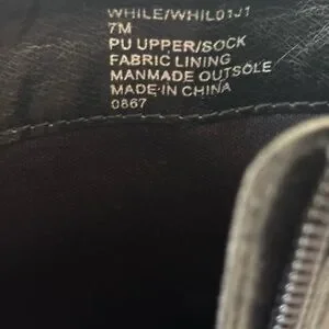 One very small, faint superficial scratch at the very front of the right boot only. Barely noticeable.