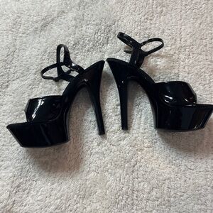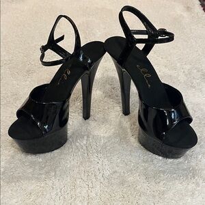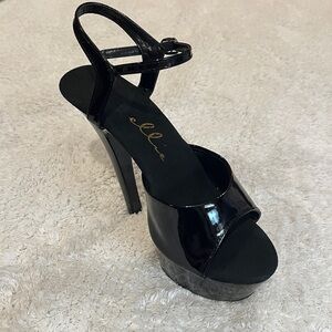 Ellie black patent size 10 platform sandal heels. 6” heels. No wear or damage. Excellent condition. Elevate your look with these glossy black platform sandals by Ellie. Sleek and stylish for any event.