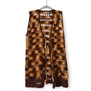 Brown and Tan Crochet Vest