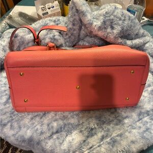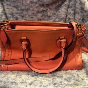 MCM Two Way Pebbled Leather Bag Satchel Salmon Coral Gold Tone Accents