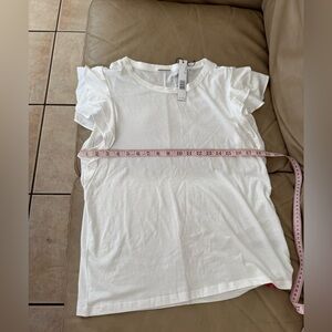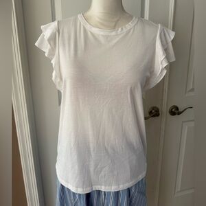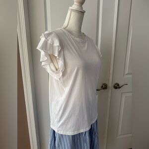 Elie Tahari Pima Cotton/Modal White Ruffle Sleeve Tee. Size L. MSRP $125