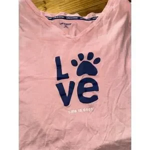 Life Is Good Sleep Pajama Set Womens 2XL Pink LOVE Paw Print 3-Piece