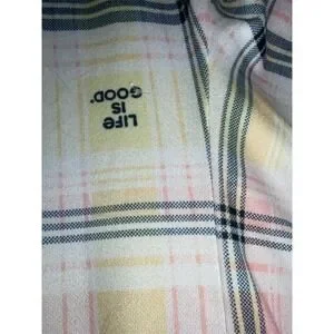 This Life is Good Sleep 3-piece pajama set makes staying in feel like the best plan. The pink long sleeve V-neck top features a sweet LOVE paw print graphic, paired with matching plaid pajama pants and shorts so you can switch it up for any season. Soft and easy with elastic waistbands for a comfy fit that moves with you. Perfect for lounging, movie nights, sleepovers, and lazy weekend mornings. Condition: pre-owned.