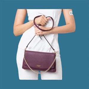 New without tag! Kate Spade Laurel Way Greer Crossbody Bag in Burgundy Saffiano Leather with Gold tone chain hardware.