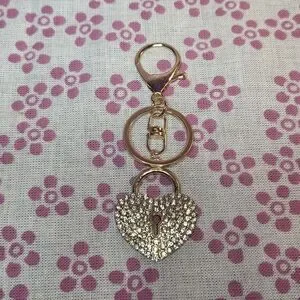 Elegant gold heart lock keychain with sparkling details. Perfect for adding a touch of luxury to your accessories.