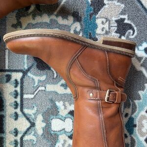 Like new condition. Smoke free. The Pikolinos Aldaya Boots in Brandy Leather are stylish and versatile riding boots perfect for casual occasions. Featuring a round toe shape, zip closure, and block heel style, these knee-high boots offer comfort and durability. With a solid brown color and a variety of themes including Western, biker, and equestrian, these boots are sure to make a statement whether you're riding in the winter or dancing in the spring.