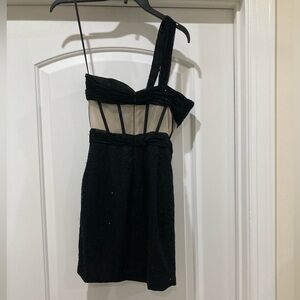 Stylish black one-shoulder dress with unique cut-out design. Ideal for special occasions.Like new