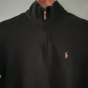 Authentic Polo Ralph Lauren half-zip pullover sweater in classic black.