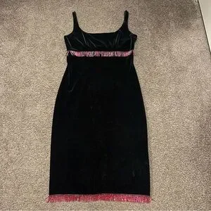 Y2K Betsey Johnson Velvet Beaded Midi Dress