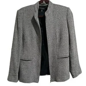 Classiques Entier wool blend blazer, preowned in great condition, no tears, black and white, lined, mock neck
