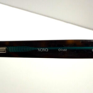 Stylish XOXO cat-eye eyeglass frames featuring a chic tortoiseshell exterior with teal inner accents and subtle decorative detailing on the temples. These frames are feminine, modern, and flattering—perfect for everyday wear or statement looks.