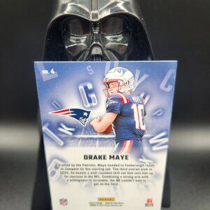 The product is a 2024 Panini Zenith football trading card featuring rookie player Drake Maye from the New England Patriots. This card is part of the A to Z insert set, showcasing a variety of players in the National Football League. With a card number of 4, this collectible item is a must-have for fans and collectors looking to add to their sports trading card collection.