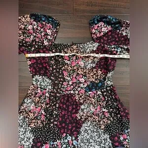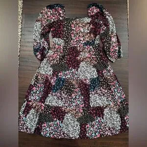 Violet romance Patchwork square neck puff 3/4 sleeve midi cottagecore milkmaid dress with zip back. In good condition.