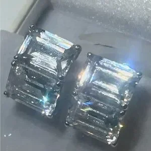 Carlisle Large Emerald Cut Crystal Clip Earrings Double Baguette Rhodium NWOT