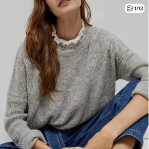 Anthropologie Keely Cable Knit Lightweight Sweater Gray