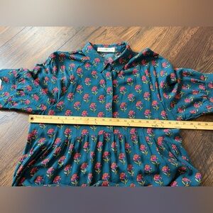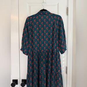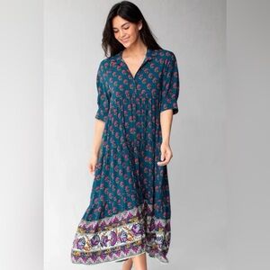 NATURAL LIFE Rebecca Midi Dress Navy Pink Roses Border in Size Large. This is in excellent, very very gently used (if at all) condition, with no flaws to note.