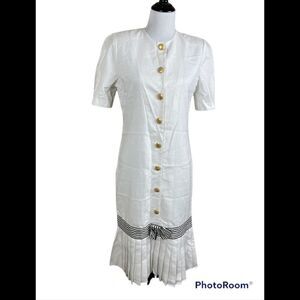 Vintage Patty O'Neil White and Blue Button Down Pleated Bottom Dress.sz 6