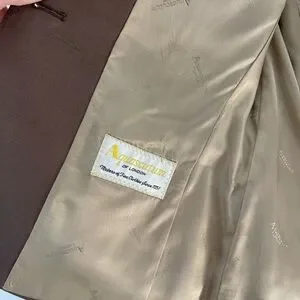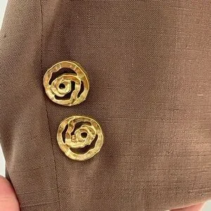 This elegant blazer combines a rich brown tone with gold accents, perfect for a polished and professional appearance. Made from a structured fabric, it offers a comfortable fit suitable for business environments.