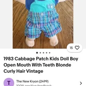 1983 cabbage patch doll in immaculate condition. So adorable with it's open mouth barely showing a few baby teeth. As well as cute little bit of blonde curly hair. Selling for approximately 70.00 on eBay Other than the fact that it has no clothes on lol it's in perfect condition!