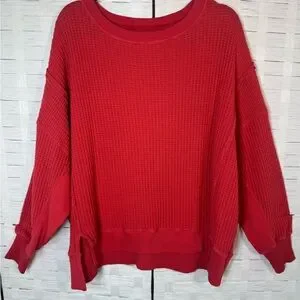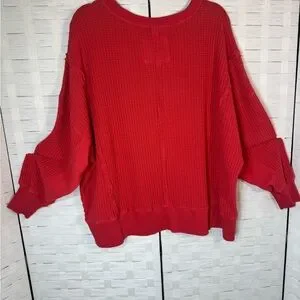 American Eagle Outfitters Women's Oversized Big Hug Waffle Crew Neck Sweatshirt Size XS Salmon color
