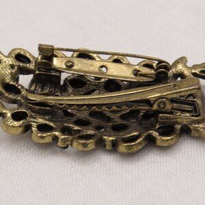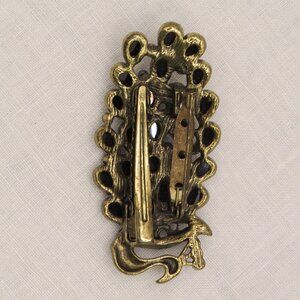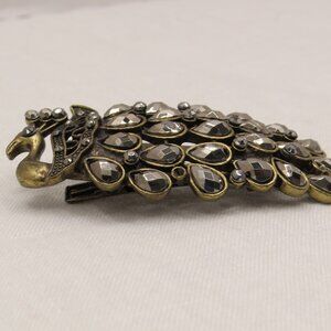 Vintage Peacock Hair Clip/Brooch Pin Teardrop Rhinestones -missing 2 tiny stones
