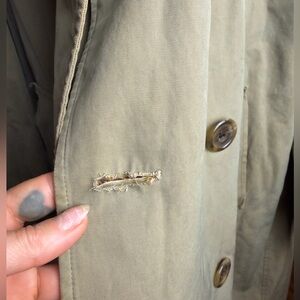 In fair vintage condition overall with some fraying on the cuffs, no belt and loops cut off (you are were going to wear it open anyways:), and some light spotting and or staining here and there