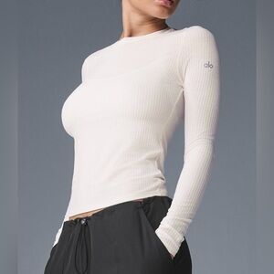 ALO Yoga Women's Cream Ribbed Long Sleeve Tee