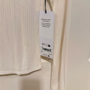 Chic and versatile ribbed long sleeve tee. Soft cream color. Perfect for layering or wearing alone.