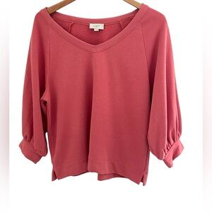 Lightweight sweatshirt material- one army green (NWT) and the other is coral (worn once). V-neckline, 3/4 length sleeves - perfect for Spring!