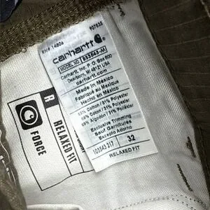 Carhartt Mens 32 Relaxed Fit Force Ripstop Cargo Work Shorts Khaki BS3643