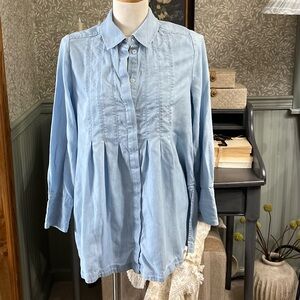 Elegant sky blue blouse with pleated design. Ideal for versatile styling.