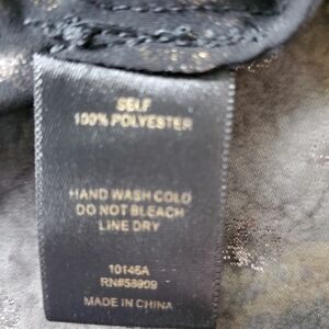 Sheer blouse with 3/4 Dolman style sleeves. Excellent pre-loved condition. Great add of sparkle and interest to that otherwise neutral attire. So much fun for festive events.